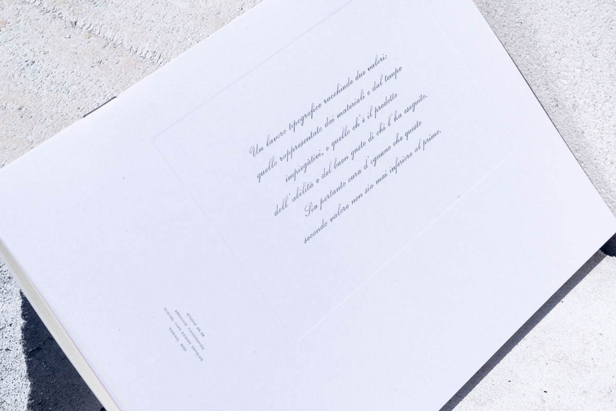 Catalogue of the digital typefaces drawn and developed by Studio 23.56, Archivio Tipografico's in-house design studio. The booklet presents typefaces available for licensing as well as custom projects designed on commission. Black and white digital printing, featuring a cover printed with hand set movable type.