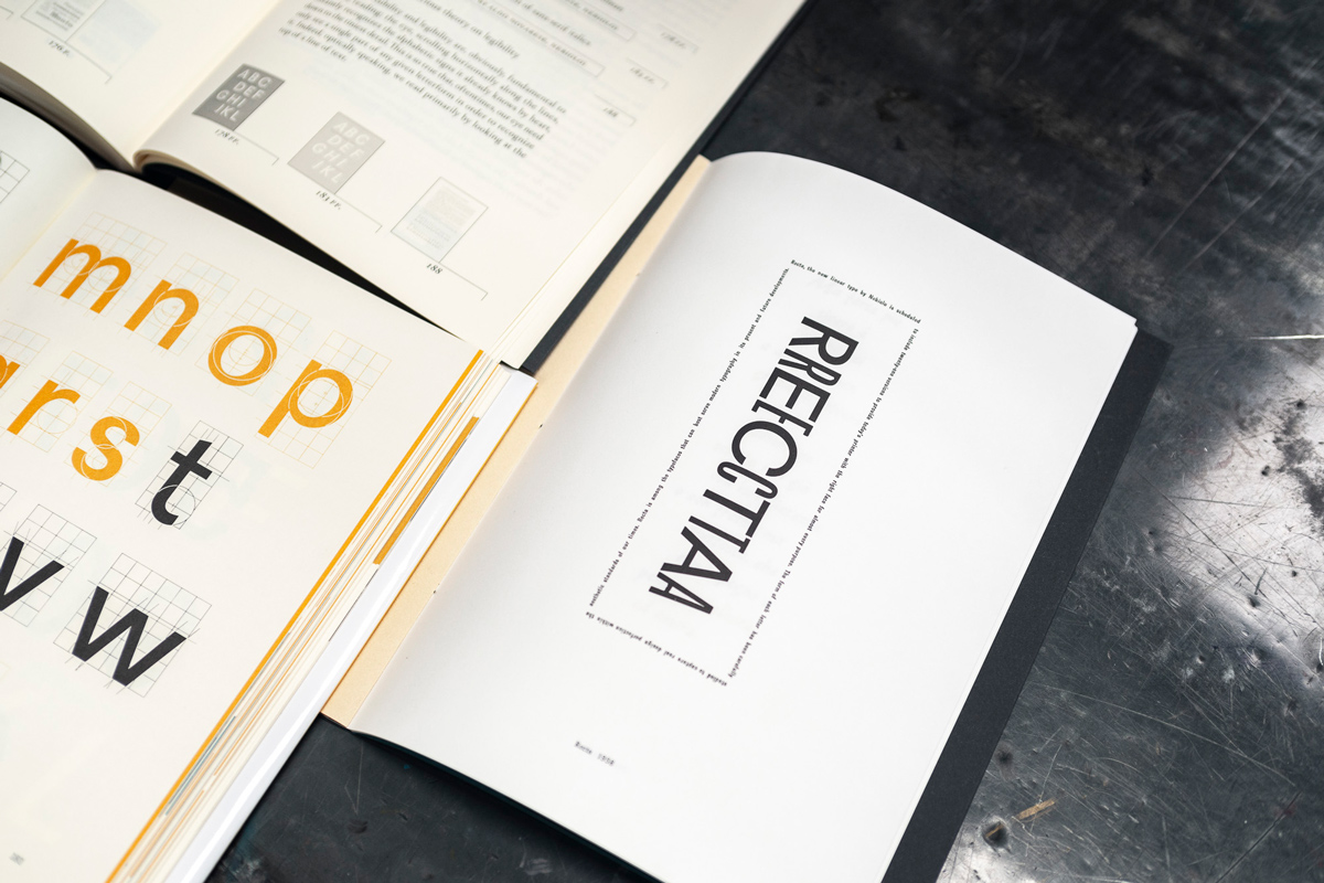 The “deluxe edition” of the reissue we curated of Aldo Novarese’s 1964 book on the history of writing systems and the evolution of type. It includes a Reader’s Guide to this third reissue featuring bilingual contextualizing essays and the English translation of the original book and a limited edition specimen printed with original Nebiolo movable type. All housed together in a handmade hardcover box printed in hotfoil.