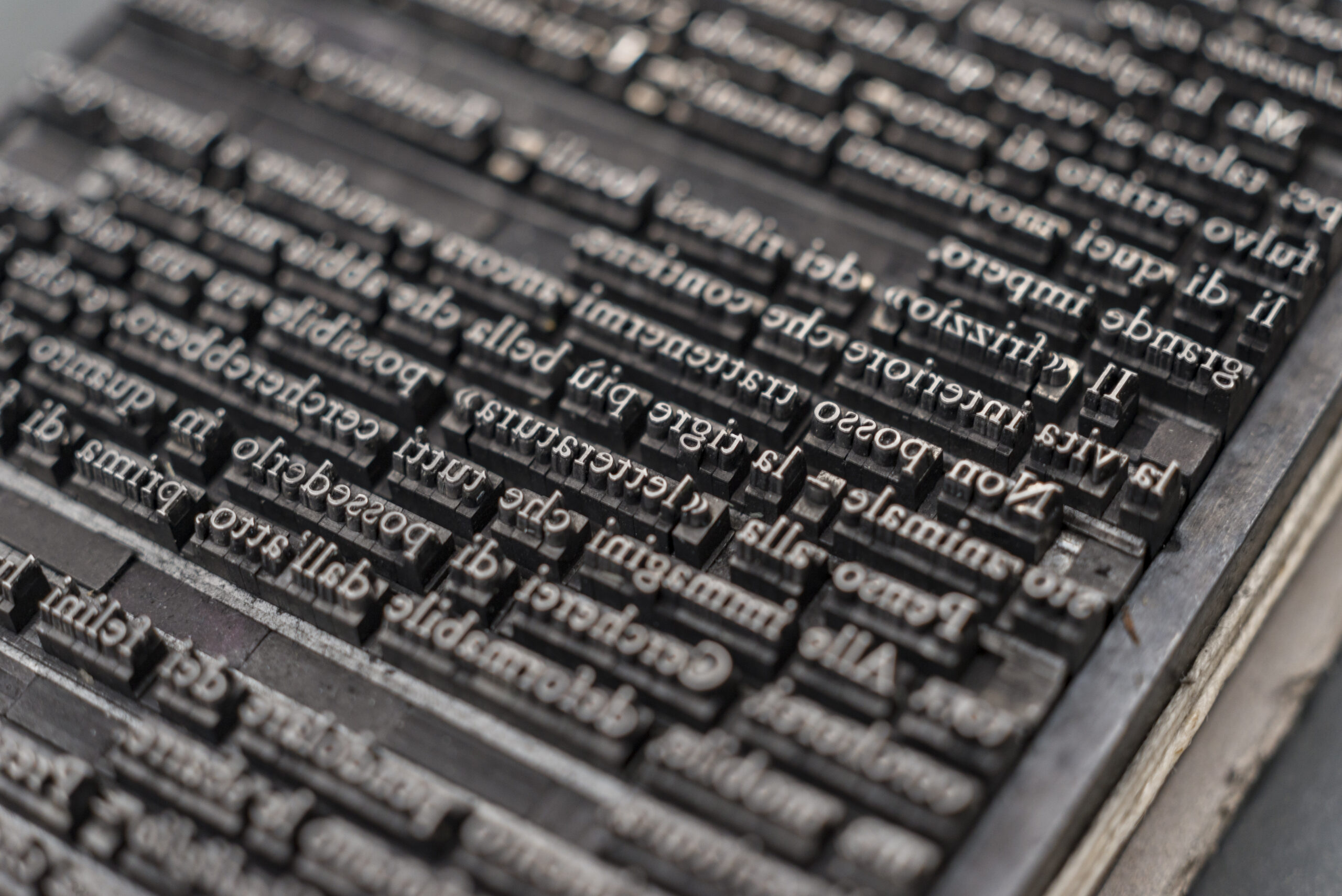 Hand typeset using various sizes and styles of the Garaldus type family, cast by Fonderie Nebiolo.