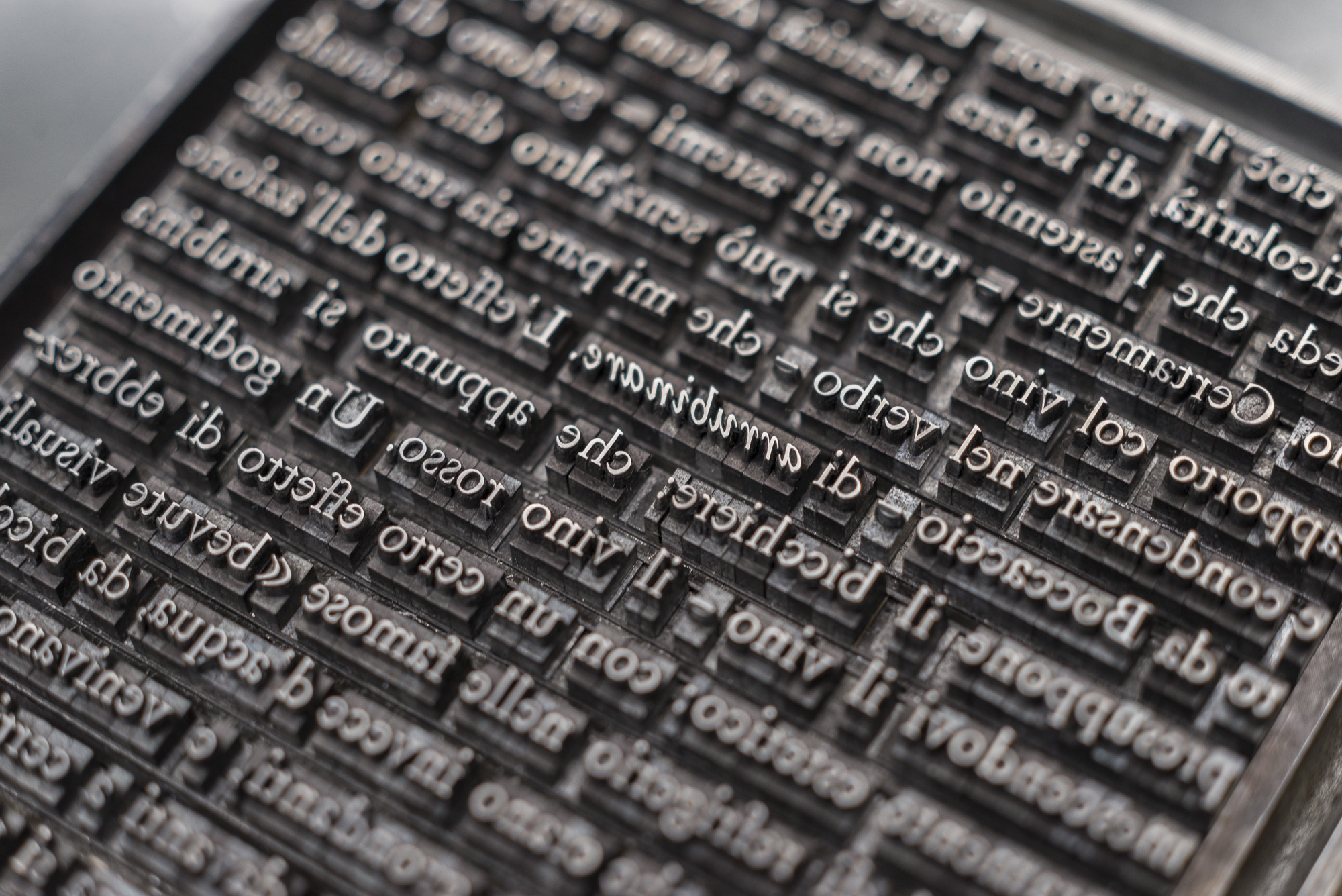 Hand typeset using various sizes and styles of the Garaldus type family, cast by Fonderie Nebiolo.