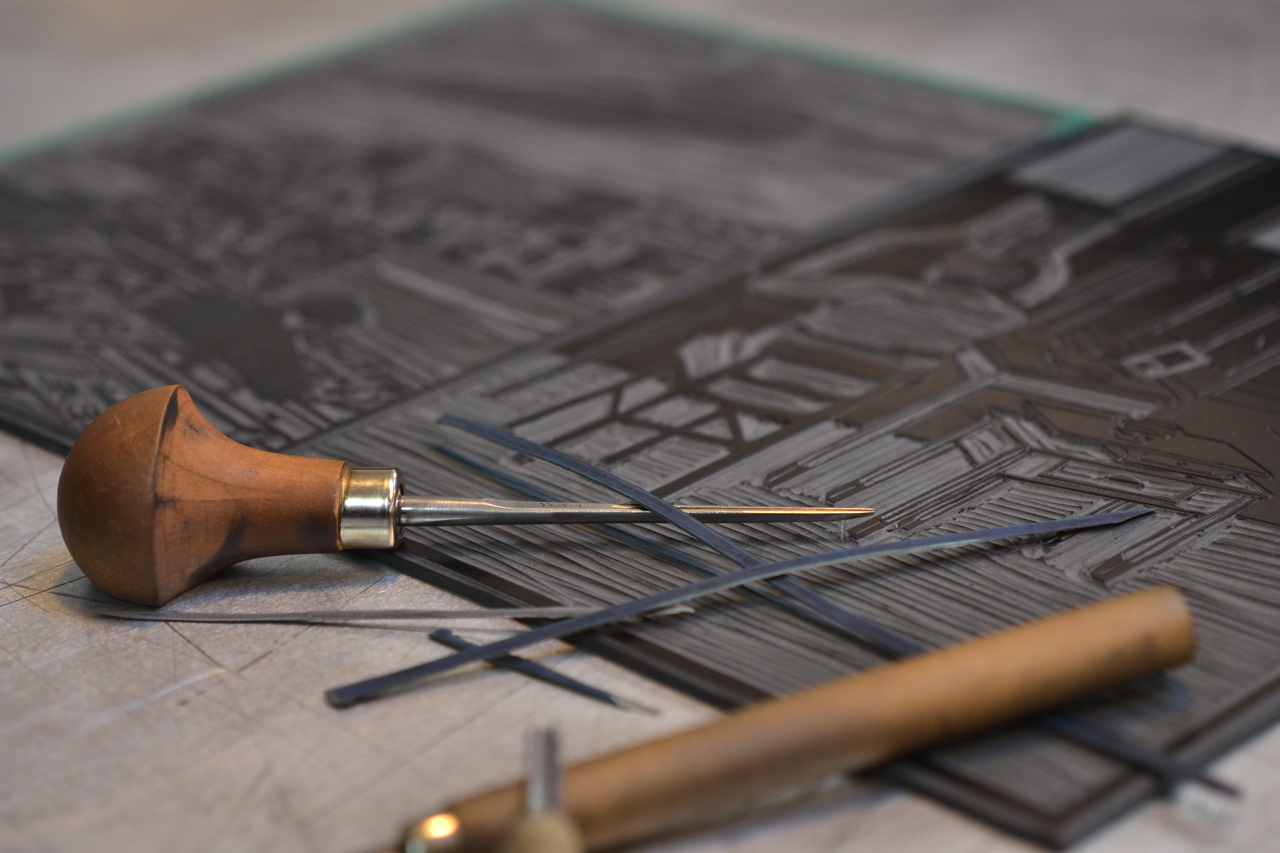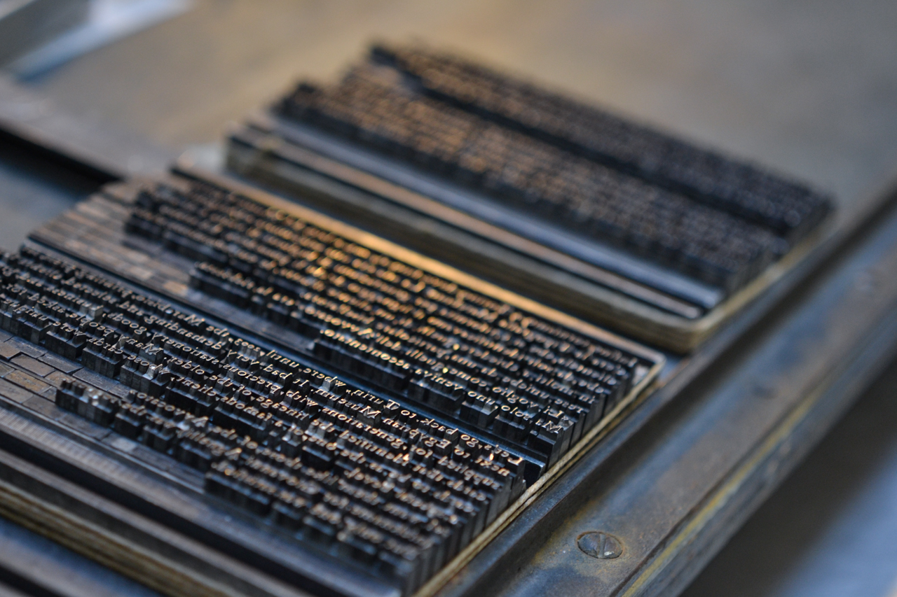 The result is a 26-page book, printed entirely by letterpress in a limited edition of 300 numbered copies, illustrated with linocut engravings and texts composed with hand-set metal type.
