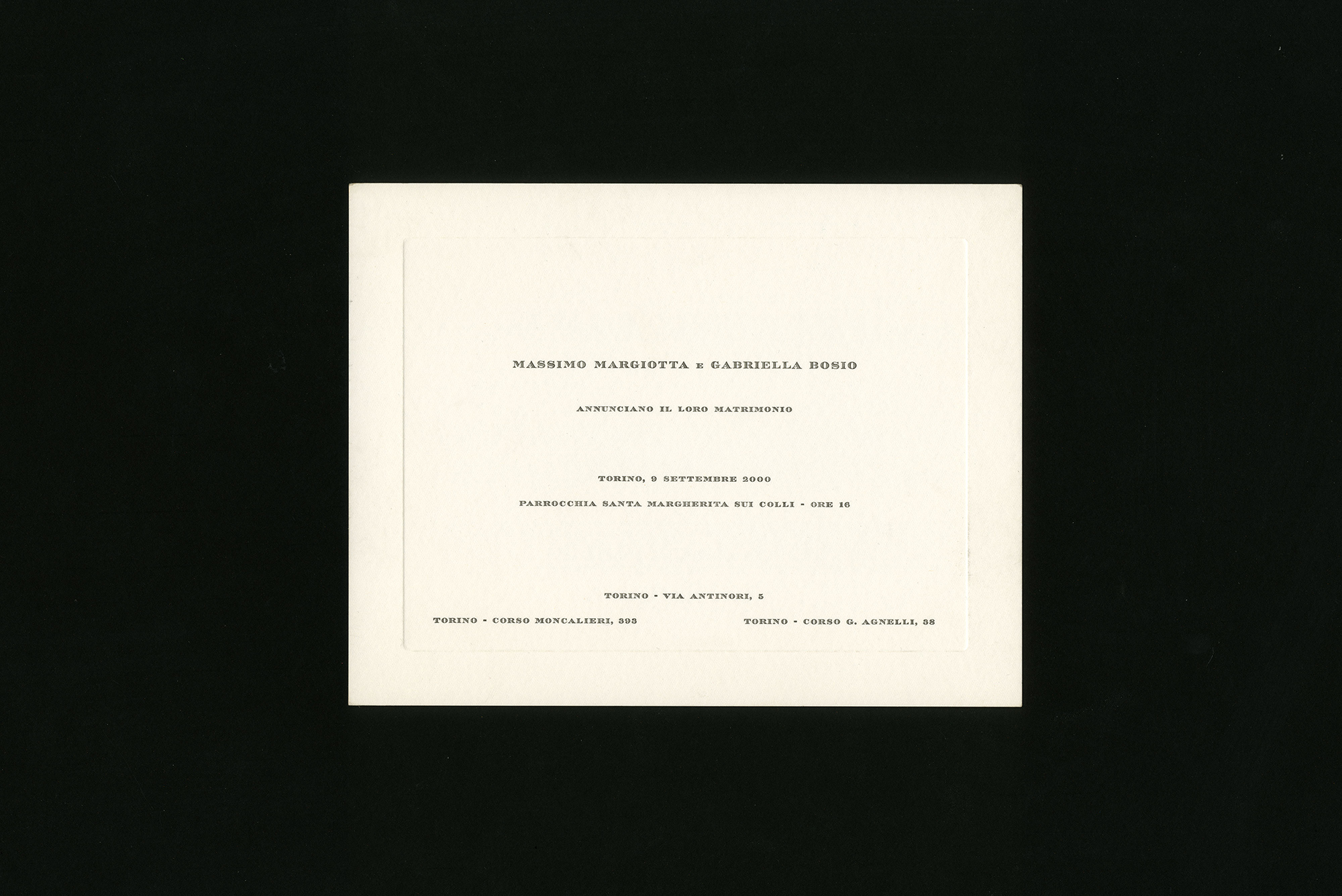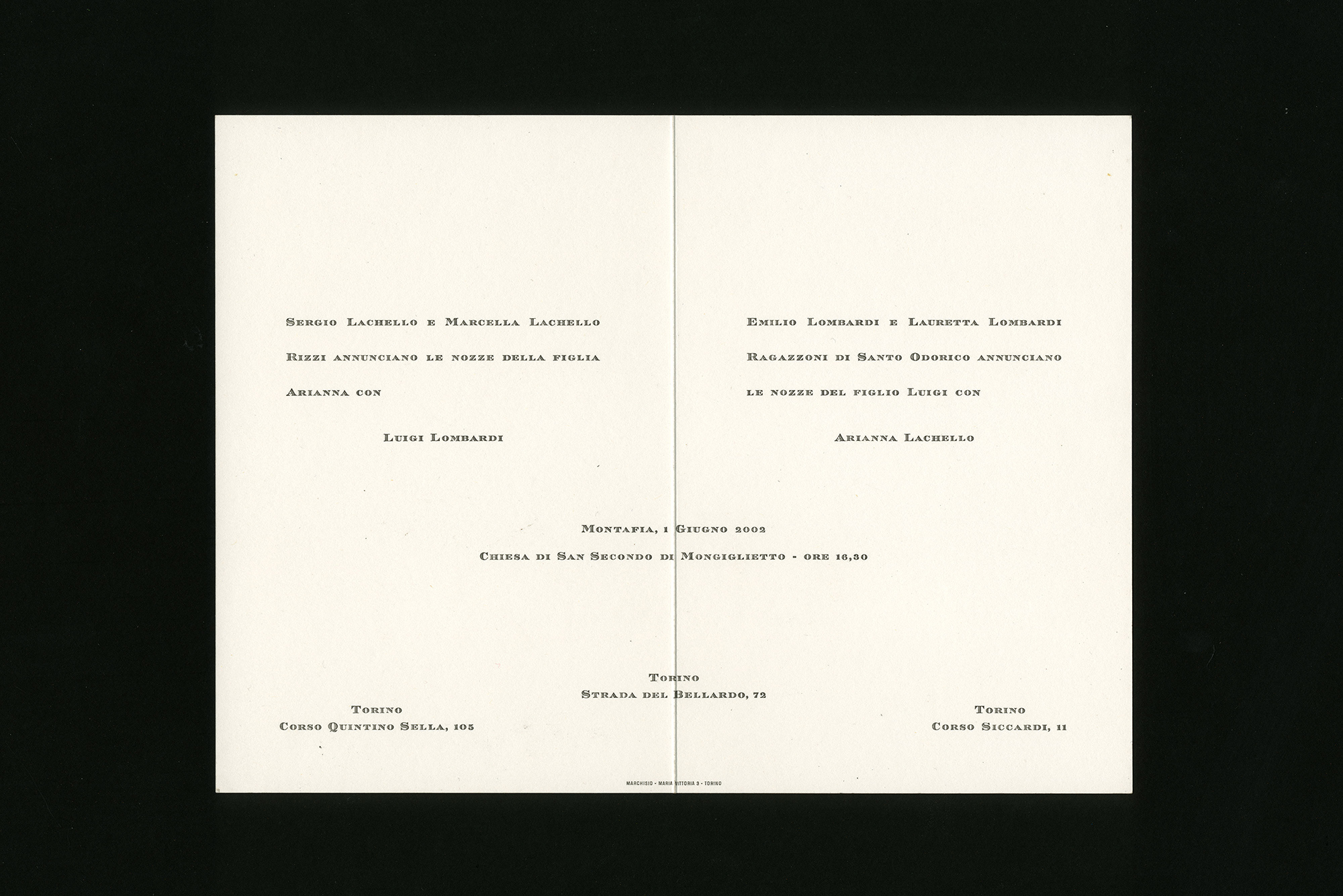 Archivio Tipografico prosegue la tradizione della Tipografia Marchisio, interamente acquisita nel 2003, producendo stampati con impostazione tradizionale realizzati esclusivamente con caratteri originali di piombo. Gli stampati che proponiamo si dividono in cinque categorie: