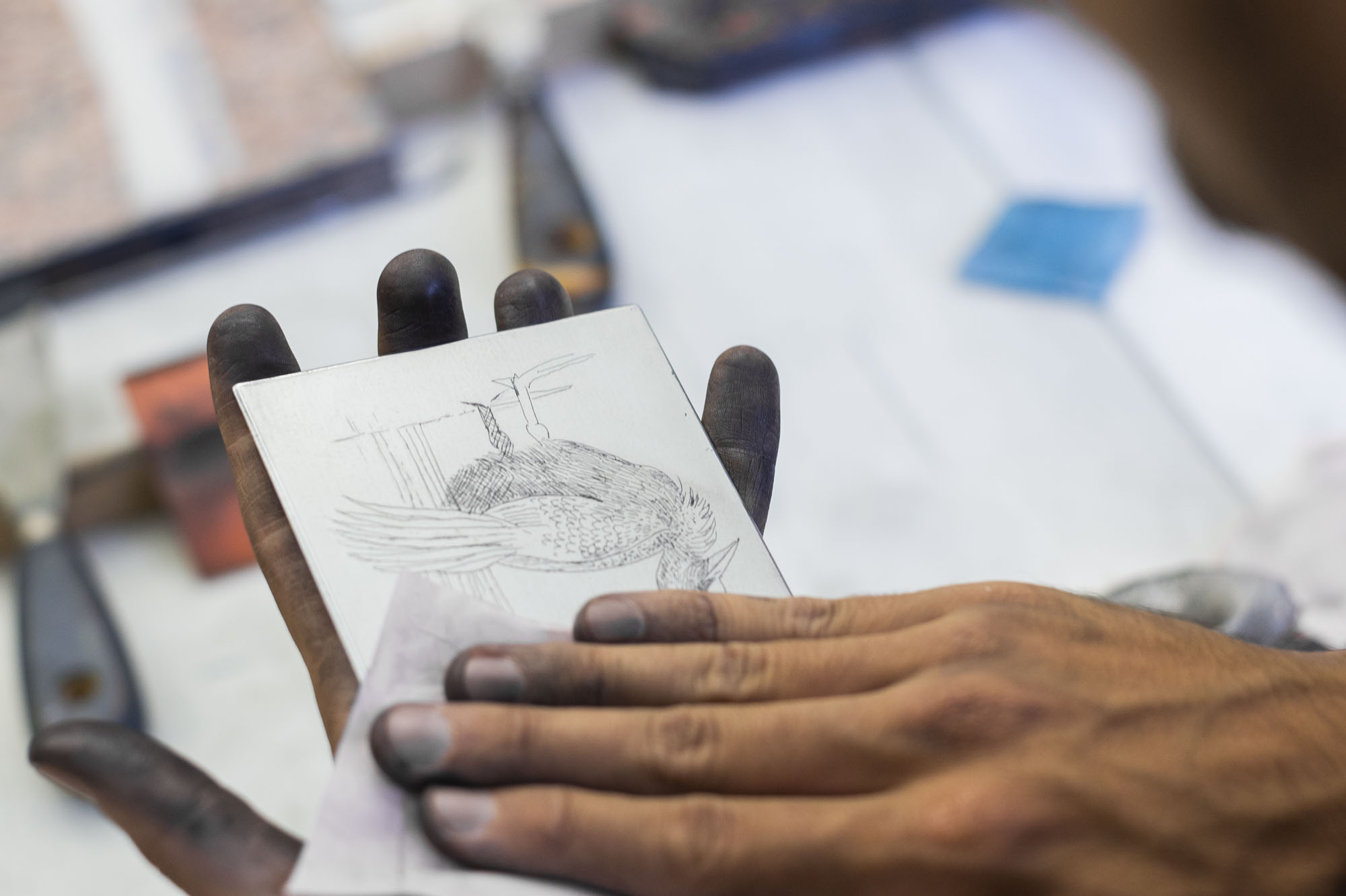 Sono state utilizzate diverse tecniche di stampa: calcografia per le incisioni originali di Tongiani, lastre fotopolimeriche per la riproduzione delle lettere, caratteri in piombo della serie Magister per la trascrizione e il saggio.