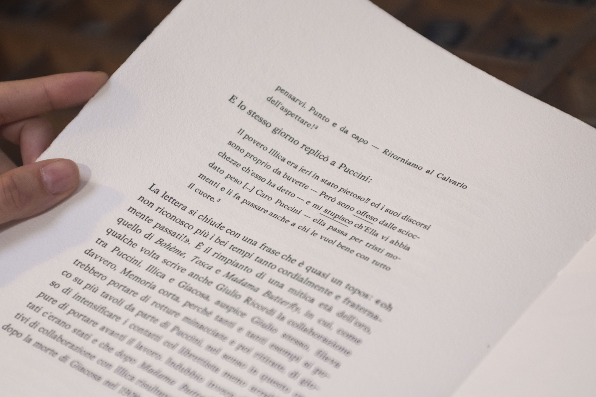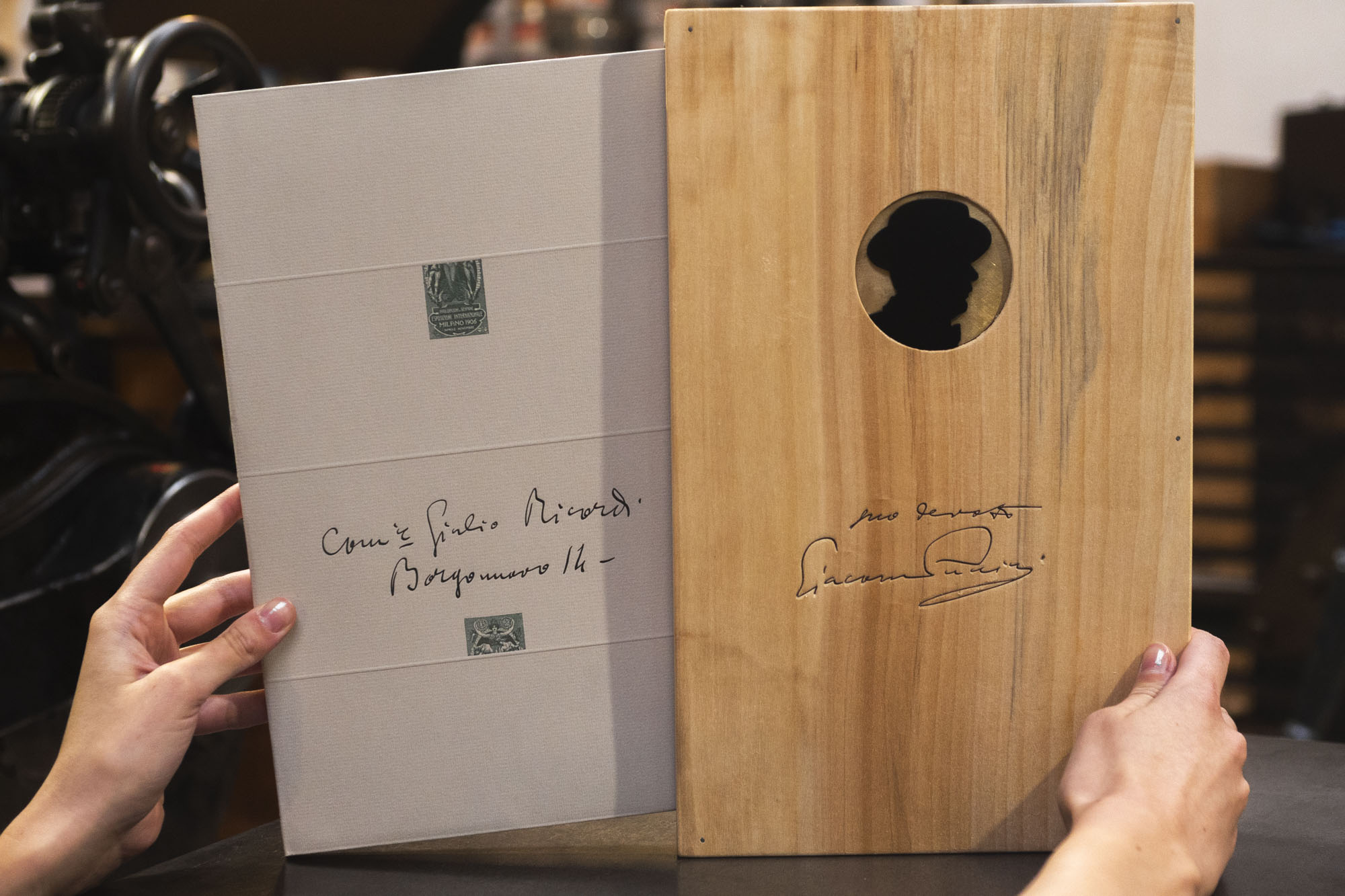 Questo è il secondo libro ideato e prodotto da Archivio Tipografico per l’associazione Cento Amici del Libro, un’organizzazione culturale attiva nel campo della bibliofilia. Il titolo di quest’anno, Suo devoto Giacomo Puccini, riporta alla luce, in occasione del centenario della morte del compositore, una lettera inedita scritta da Puccini all’amico ed editore Giulio Ricordi.