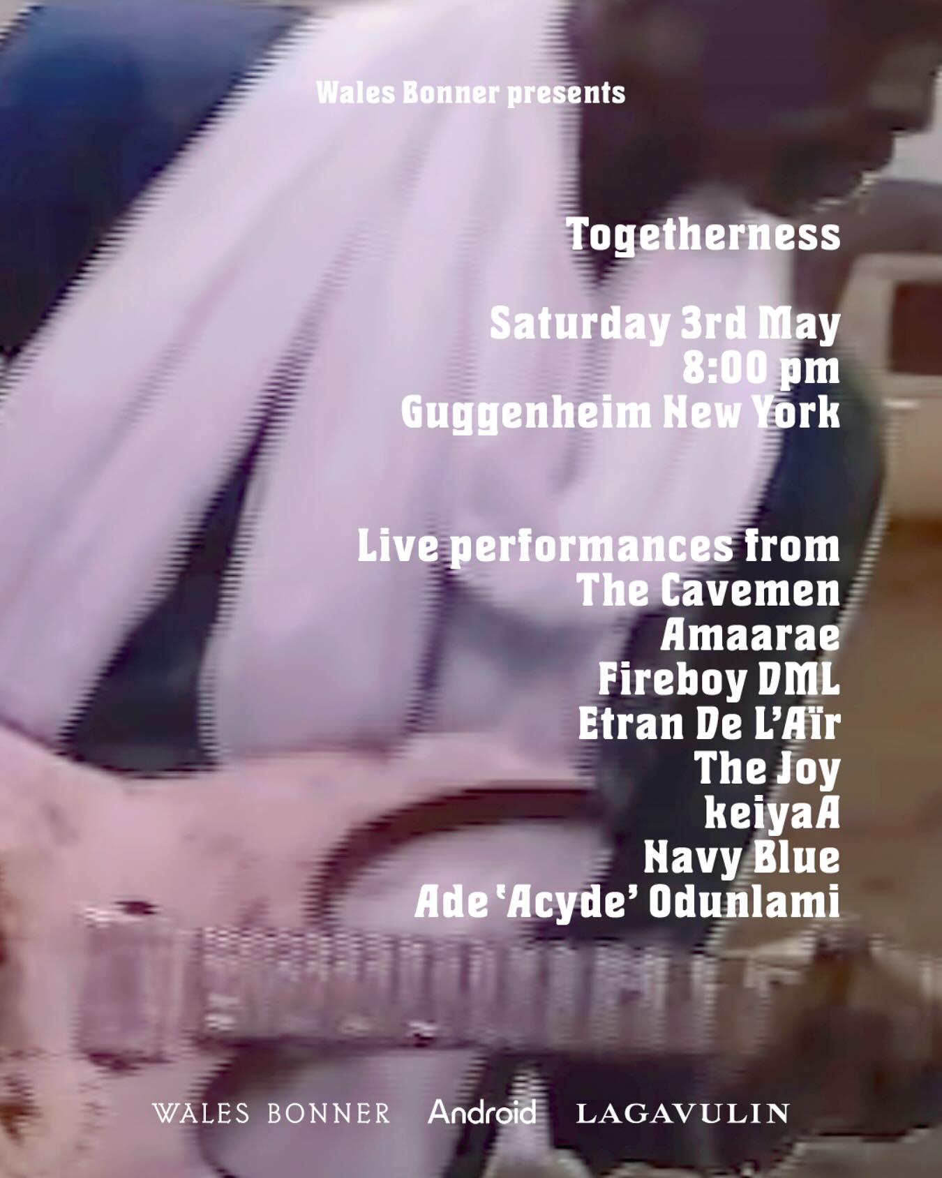 Nelle foto: font “Ehmcke Latein WB” e “Cenisio WB” in uso, tutti i diritti riservati a Wales Bonner.