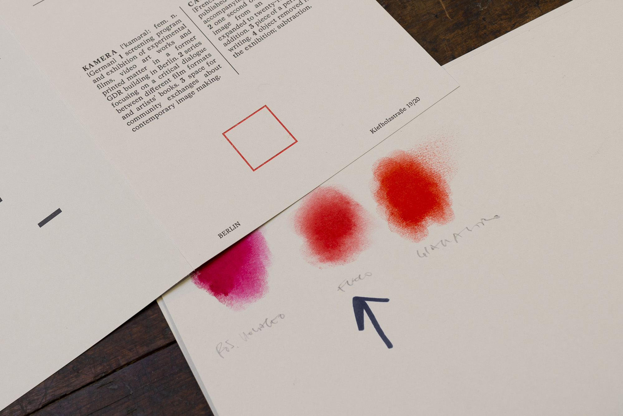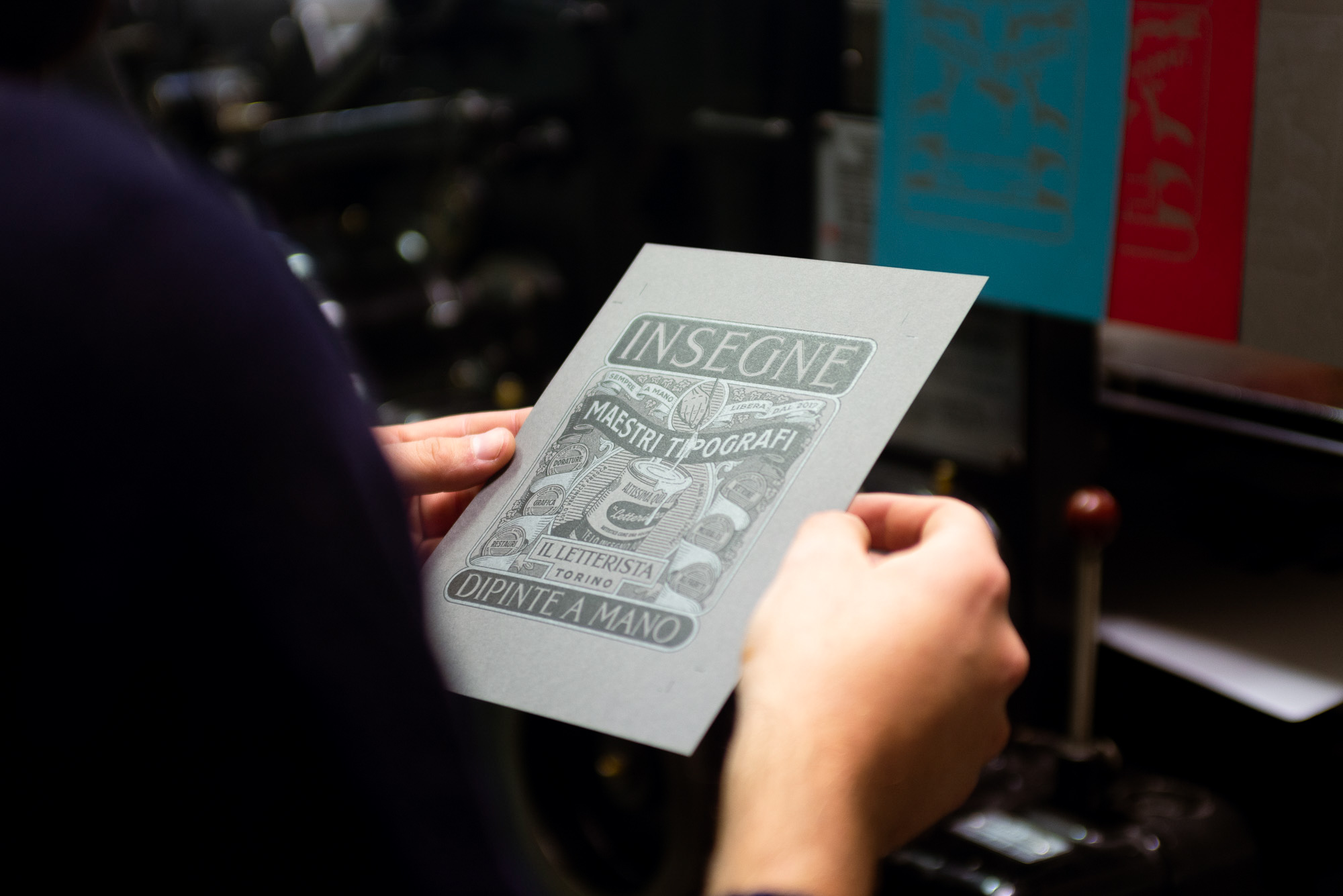 Archivio Tipografico utilizza solo colori miscelati appositamente. Dato uno specifico riferimento cromatico o un codice Pantone, la stamperia è in grado di riprodurlo con grande fedeltà, coprendo anche la gamma degli inchiostri fluorescenti. È anche possibile realizzare fondi colorati su supporti cartacei, nei limiti dei formati consentiti. Questa lavorazione è indicata ad esempio per progetti di brand identity basati su precise cromie.