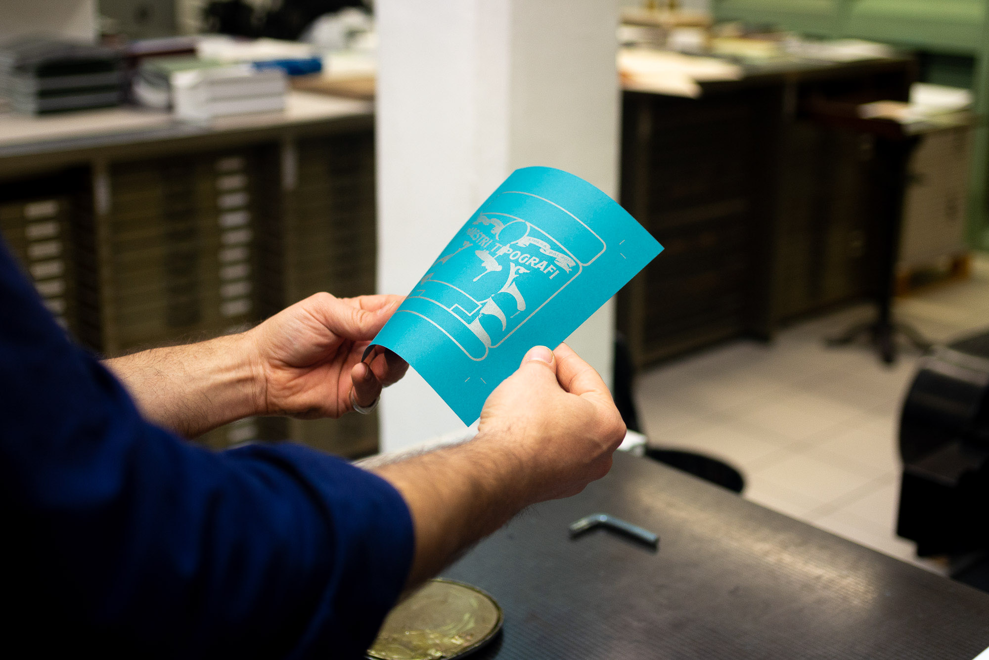 In alternativa alla stampa hot-foil, e con l’obiettivo di ridurre l’utilizzo di plastiche nel processo di stampa, il laboratorio propone l’uso di inchiostri metallizzati. I pigmenti impiegati risultano particolarmente riflettenti su carte patinate o lisce, conferendo un effetto luminoso e brillante e impreziosendo l’elaborato.