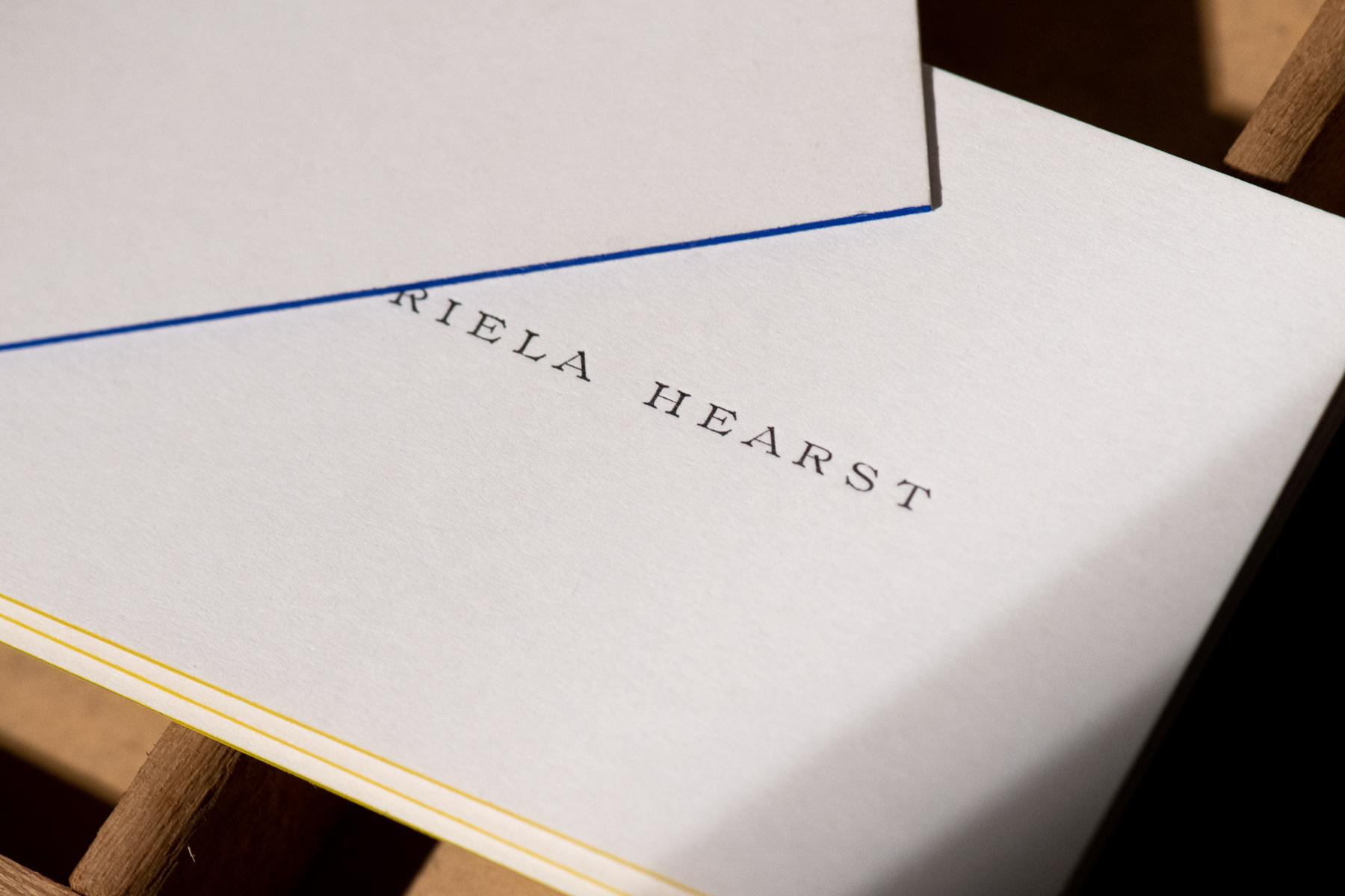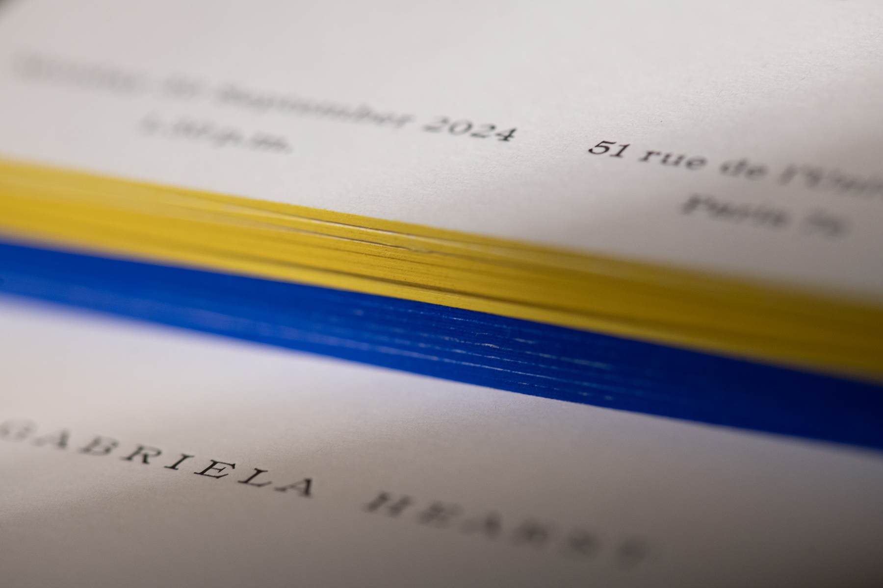 La possibilità di personalizzare con uno o più colori il bordo sul taglio della carta. Questa lavorazione è particolarmente consigliata per piccoli supporti come biglietti e inviti, aggiungendo un tocco di colore e raffinatezza.
